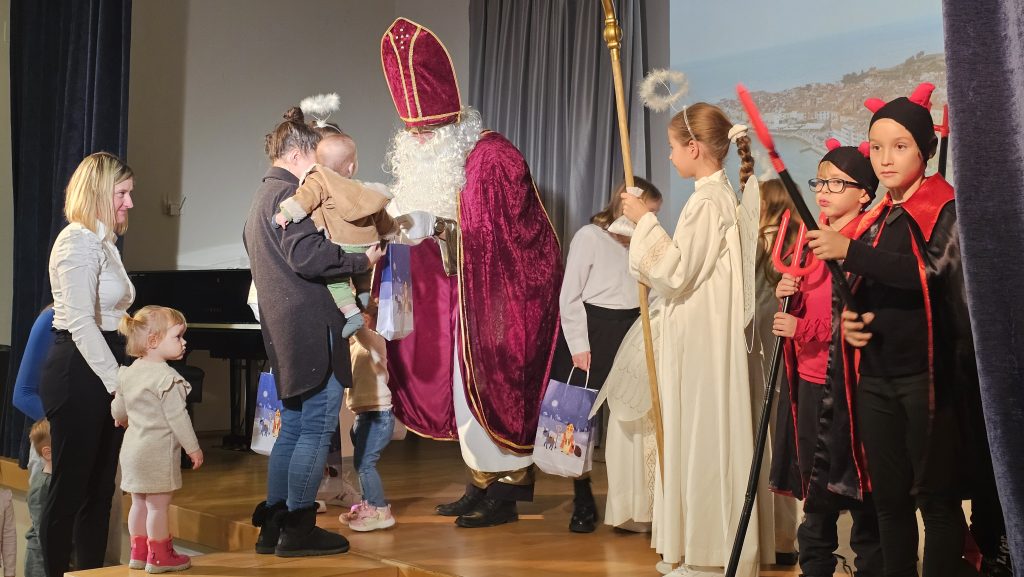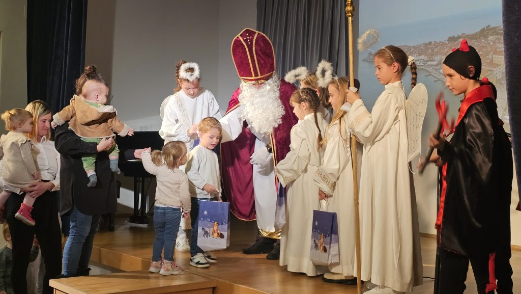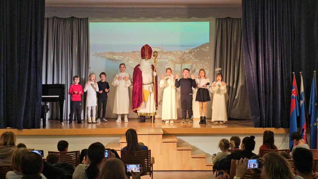 Sv. Miklavž je tudi letos obiskal otroke v Piranu. Veroučenci so pod vodstvom katehistinje Mirjam in Snežane pripravili krajšo igrico. Vsem, ki ste mu pomagali, da je lahko obdaril 40 piranskih otrok, se lepo zahvaljuje.